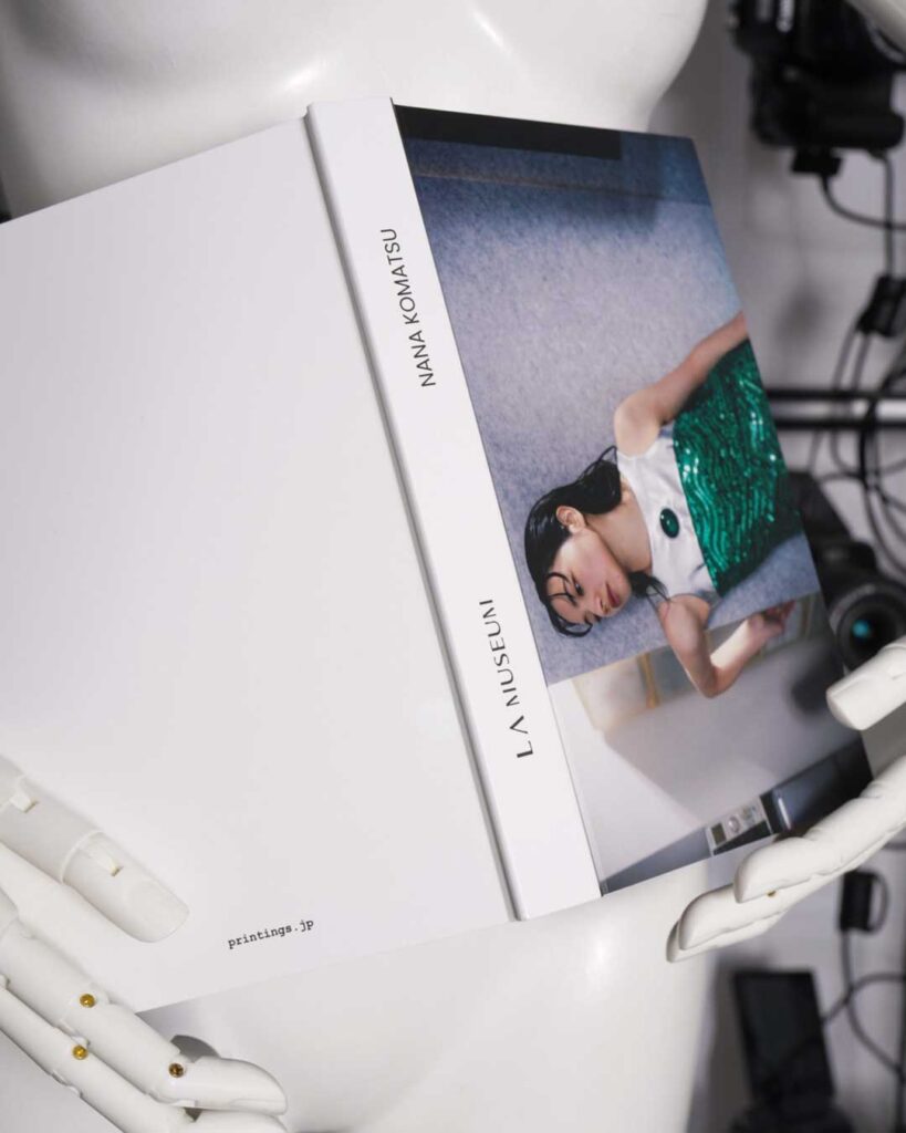 Photographed by E-WAX and styled by Ayaka Endo, with hair by Hayate Maeda and makeup by Asami Taguchi, the project was art-directed by Junsuke Yamasaki and book-designed by LAILA Co., Ltd. A companion photobook titled LA Museum Nana Komatsu—documenting the two-day 3D shoot held in January 2025—will be released on October 26, 2025 (JST). The cover features Komatsu in a sleeveless Pierre Cardin dress radiating a futuristic allure.