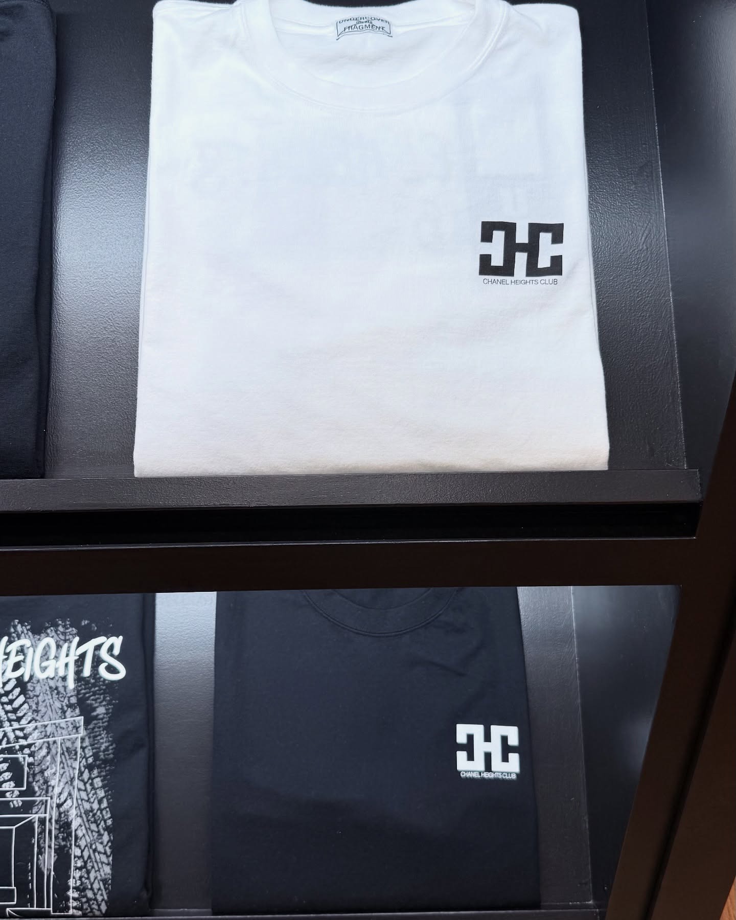 The lineup extends beyond outerwear to include down vests and jackets, as well as T-shirts printed with “Undercover meets Fragment” graphics. One standout piece pays homage to “Chanel Heights,” the apartment complex where Hiroshi Fujiwara and Jun Takahashi once worked together during the 1990s—a nod to the formative era that defined their creative bond.