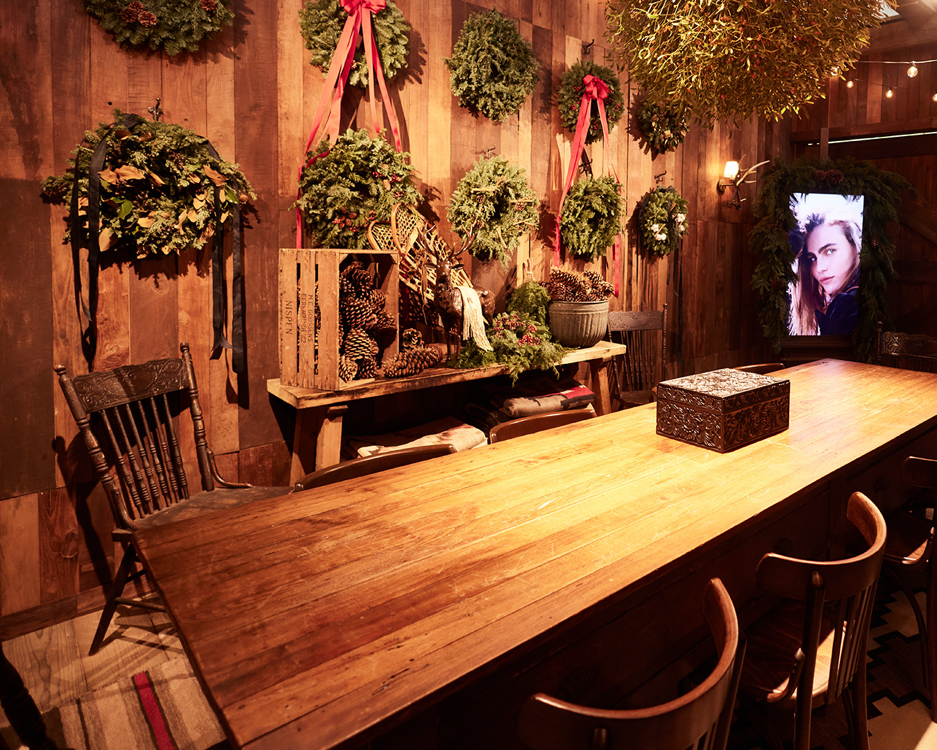 Visitors can take part in hands-on workshops that highlight the scent and texture of fresh evergreens, creating wreaths and swags that reflect the brand’s tradition-driven approach to holiday craft. A dedicated holiday shop complements the space with a curated selection of small leather goods, accessories, and classic cable knits chosen with gifting in mind.