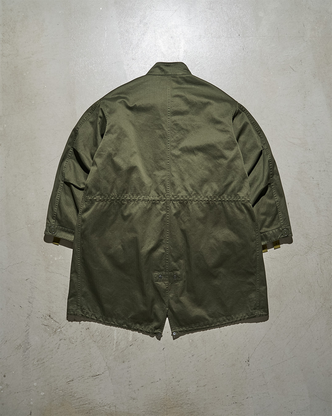 Graphpaper takes on N.Hoolywood’s well-known 2-way M-65, reworking it in the label’s original Suvin herringbone fabric to create the Fishtail Mods Coat. While retaining the defining structure of the M-65, the coat is pared back with a clean, hoodless design. A detachable liner combines Pertex Quantum, ripstop, and Primaloft to deliver lightweight insulation, water resistance, and comfort suited to everyday urban wear. The result is a streamlined outer layer that balances military references with Graphpaper’s precise minimalism.