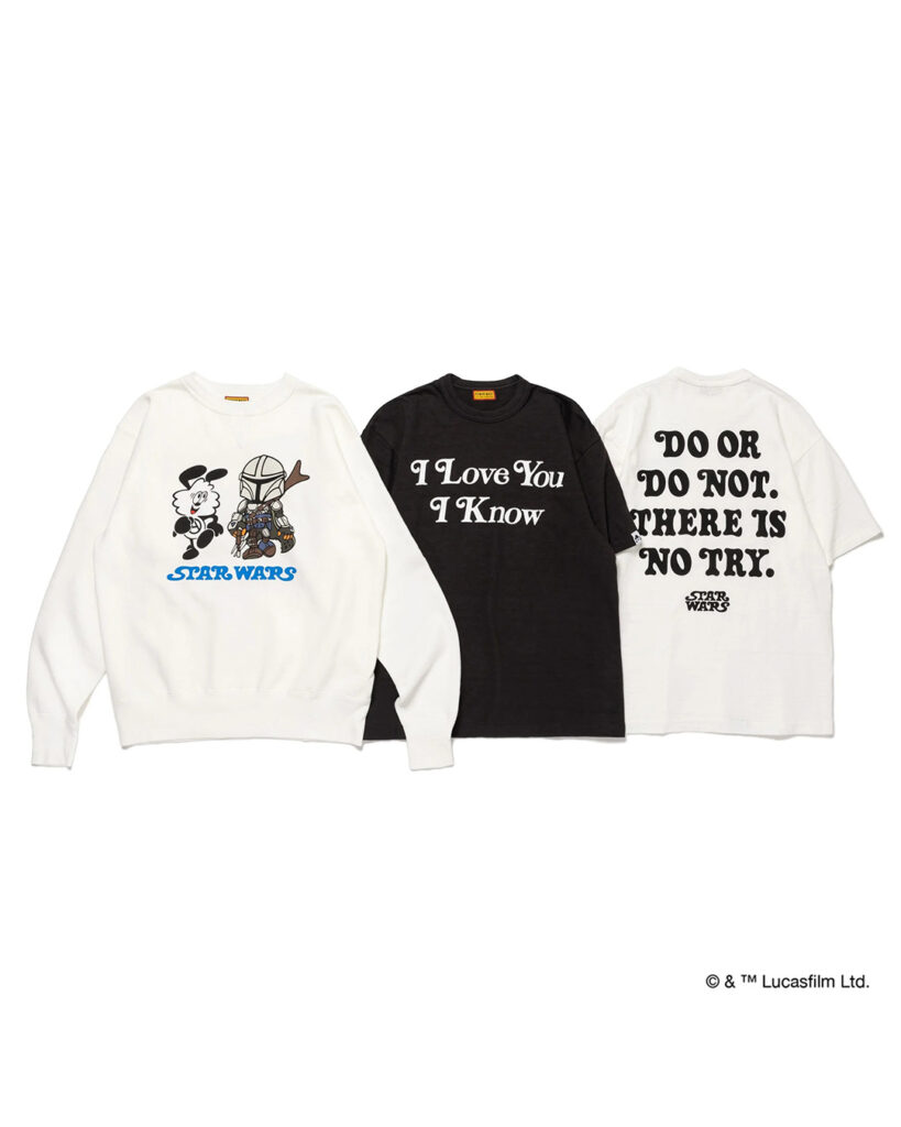 The capsule consists of five items in total. Two Tsuriami sweatshirts are priced at ¥35,200 (tax included), while three graphic T-shirts are offered at ¥14,300 (tax included). Each piece showcases Verdy’s interpretation of Star Wars, blending nostalgia with Human Made’s established aesthetic.