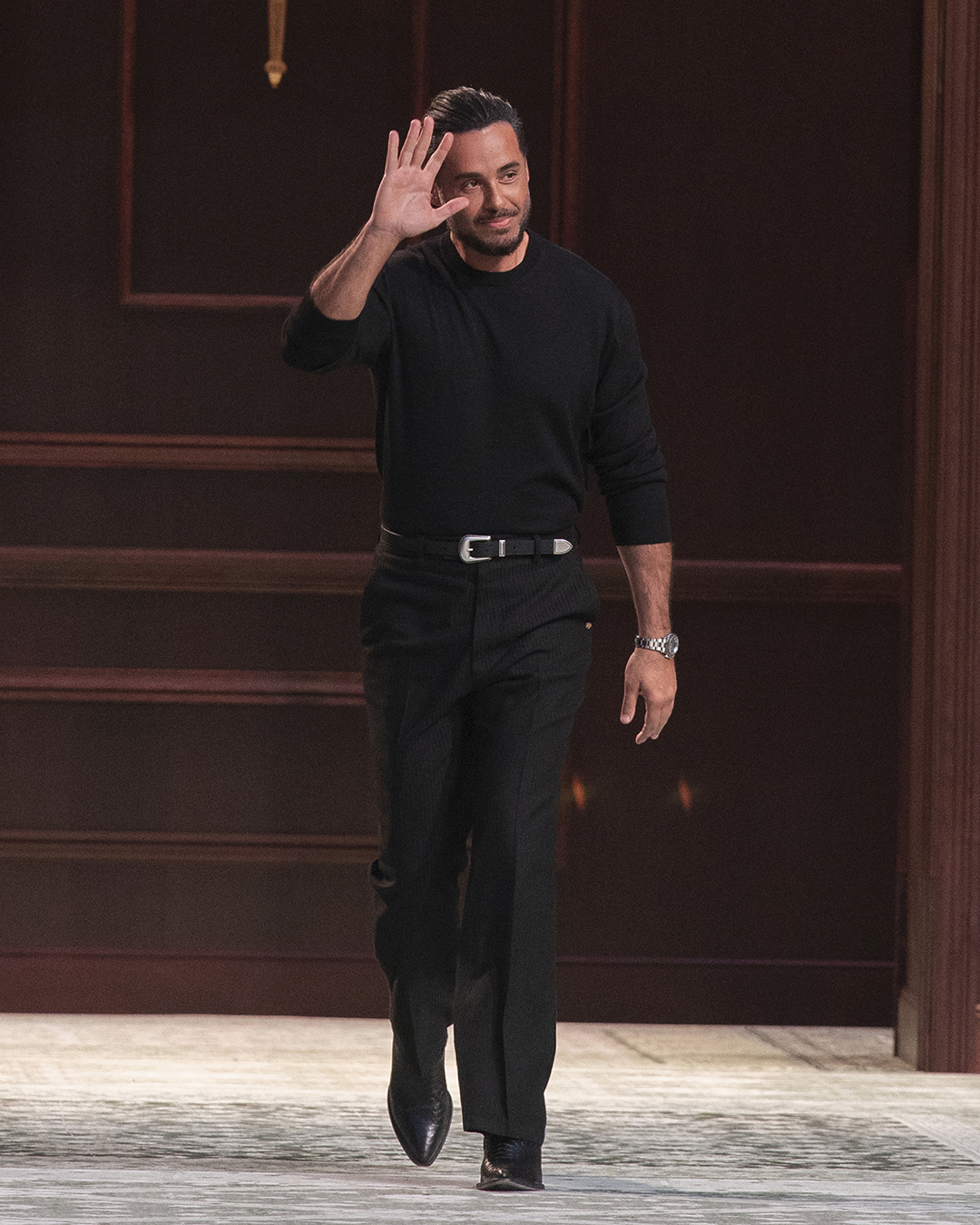 Every detail serves as “punctuation” rather than mere decoration, emphasizing intimate craftsmanship that reveals itself upon closer inspection. Military-inspired jackets, leather pieces, and classic denim are elevated through the house’s signature savoir-faire. Accessories also saw an evolution, with the “Honey” and “East-West Pochette Clutch” handbags being reinterpreted alongside updated original Western boots. Presented at Le Carreau du Temple in a setting reminiscent of a luxurious Laurel Canyon home, the show reflected a living reality rather than a runway fantasy.