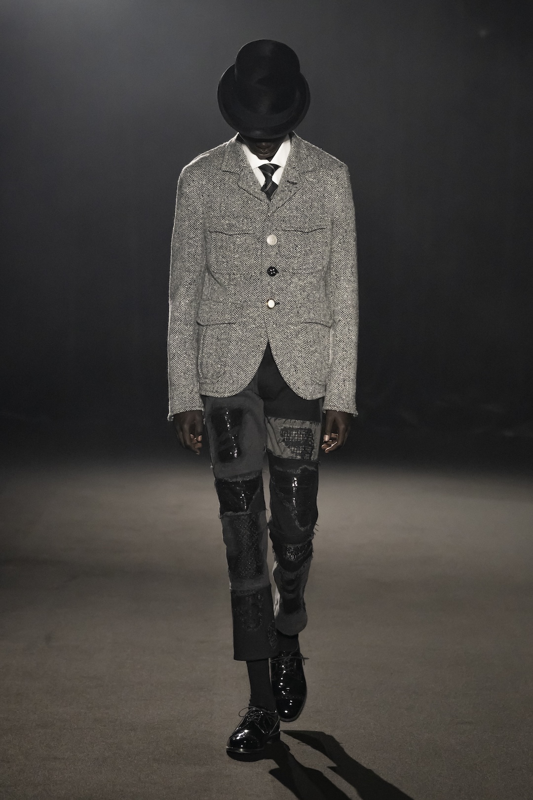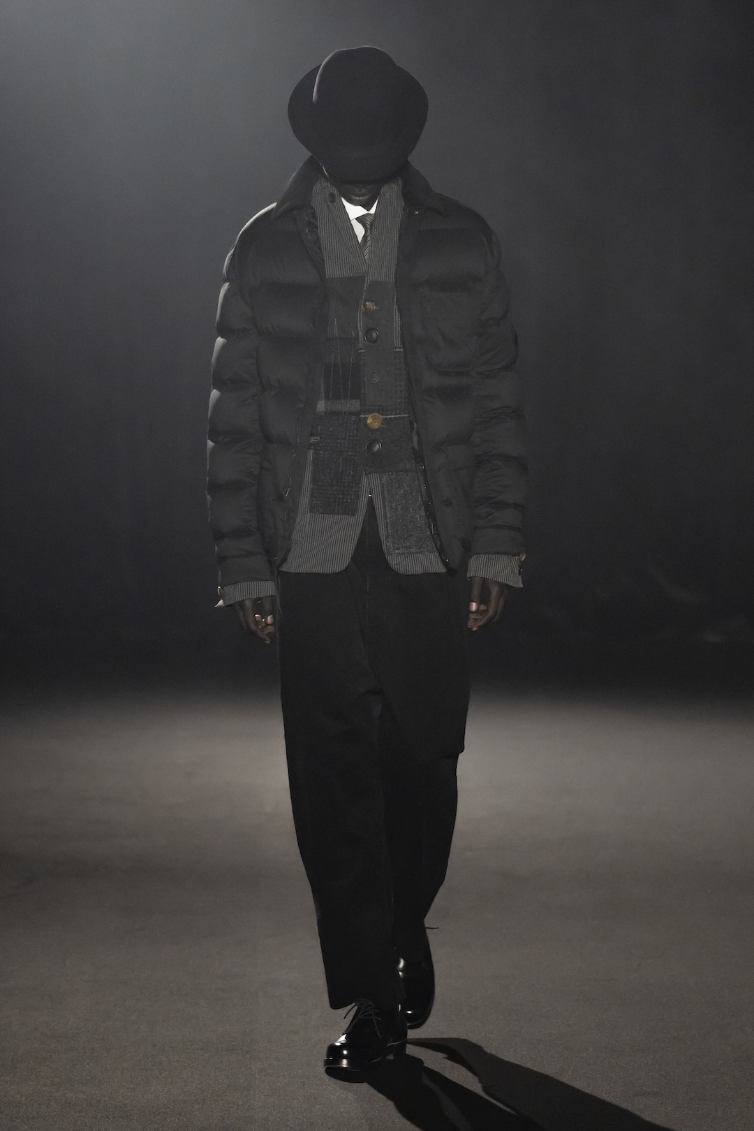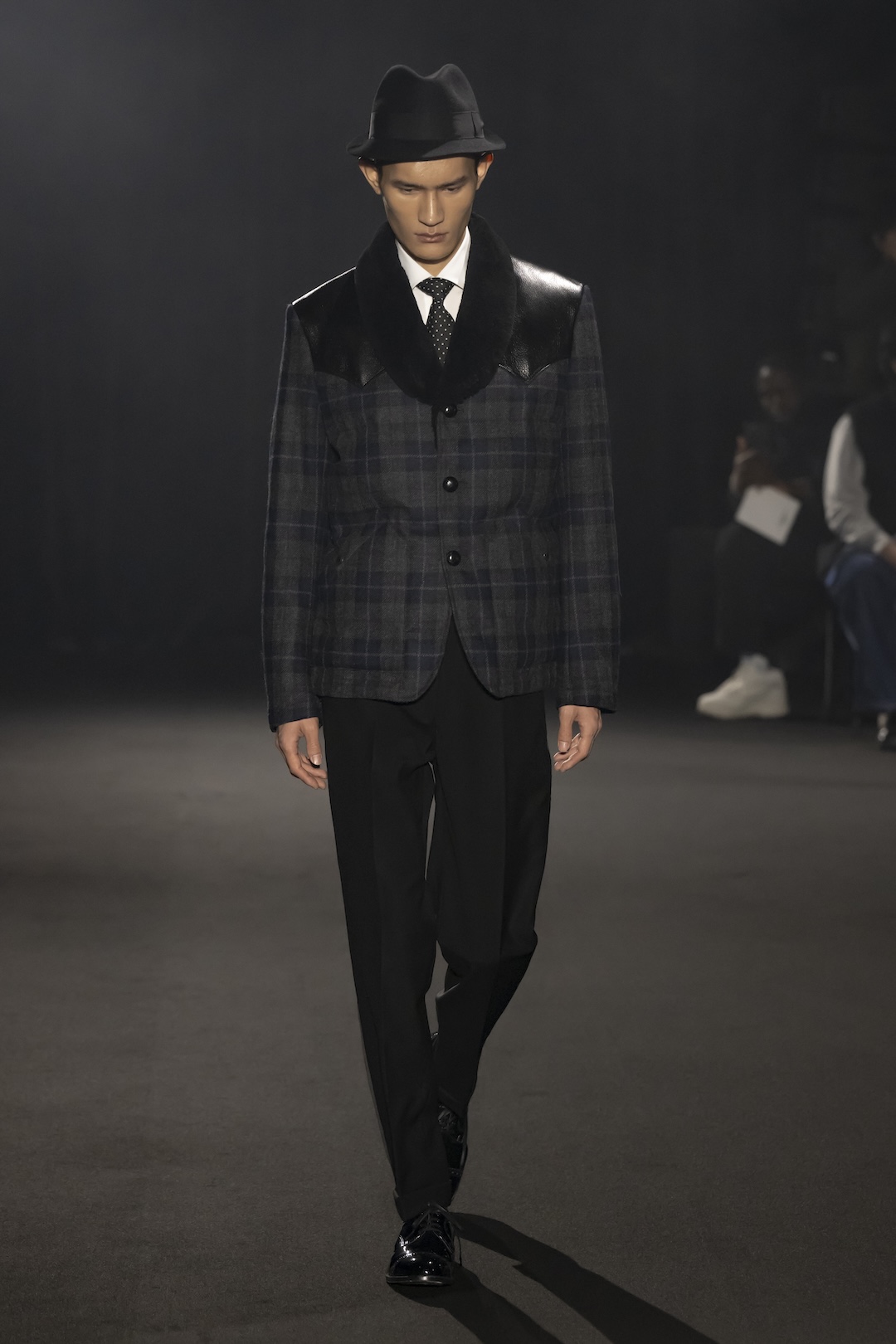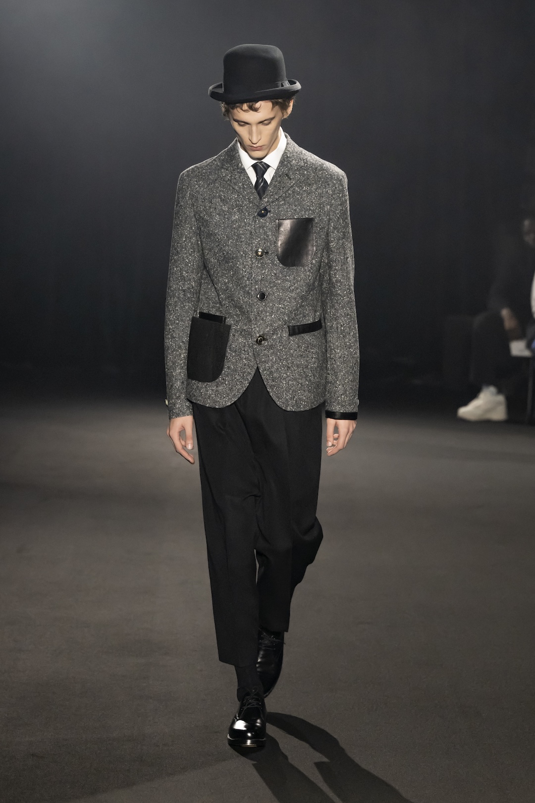 Footwear and accessories further emphasize this “best dressed” ethos, blending heritage craft with modern comfort. The runway featured formal shoes by Tricker’s, leather footwear by Heinrich Dinkelacker, and technical sneakers from New Balance. Additional collaborative pieces with Rocky Mountain and ’47 rounded out the accessories, ensuring every element of the look adhered to the season’s refined standard. By deconstructing and elevated classic pieces, Junya Watanabe MAN continues to redefine contemporary masculine style.