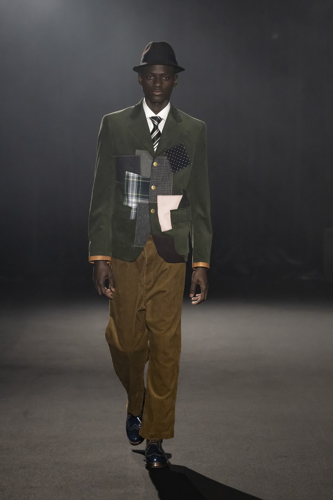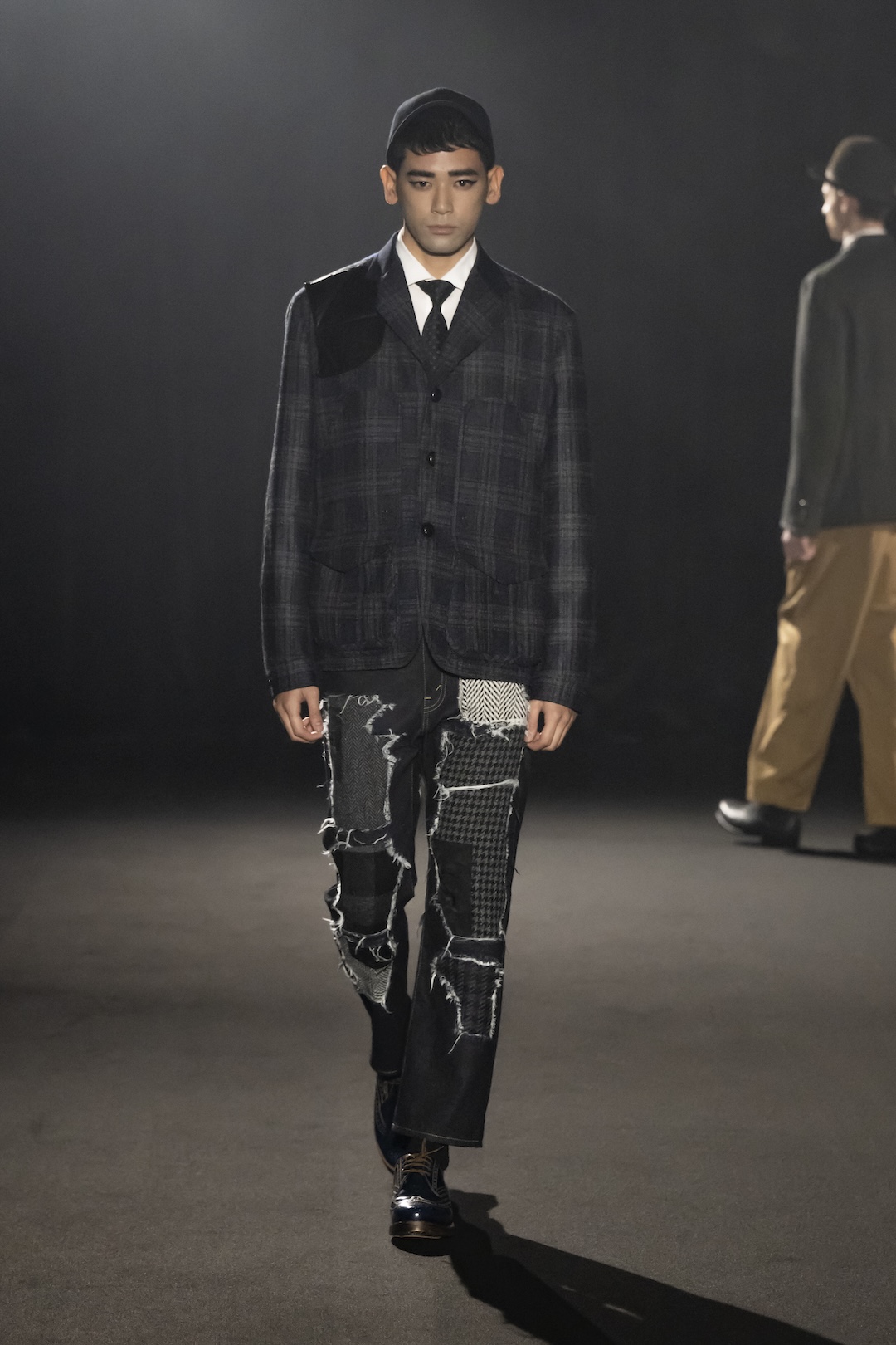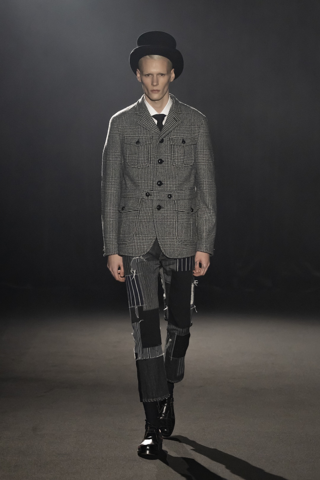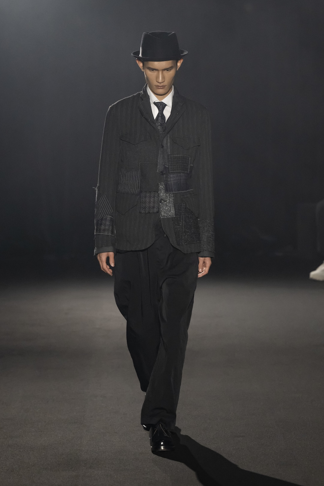 Footwear and accessories further emphasize this “best dressed” ethos, blending heritage craft with modern comfort. The runway featured formal shoes by Tricker’s, leather footwear by Heinrich Dinkelacker, and technical sneakers from New Balance. Additional collaborative pieces with Rocky Mountain and ’47 rounded out the accessories, ensuring every element of the look adhered to the season’s refined standard. By deconstructing and elevated classic pieces, Junya Watanabe MAN continues to redefine contemporary masculine style.