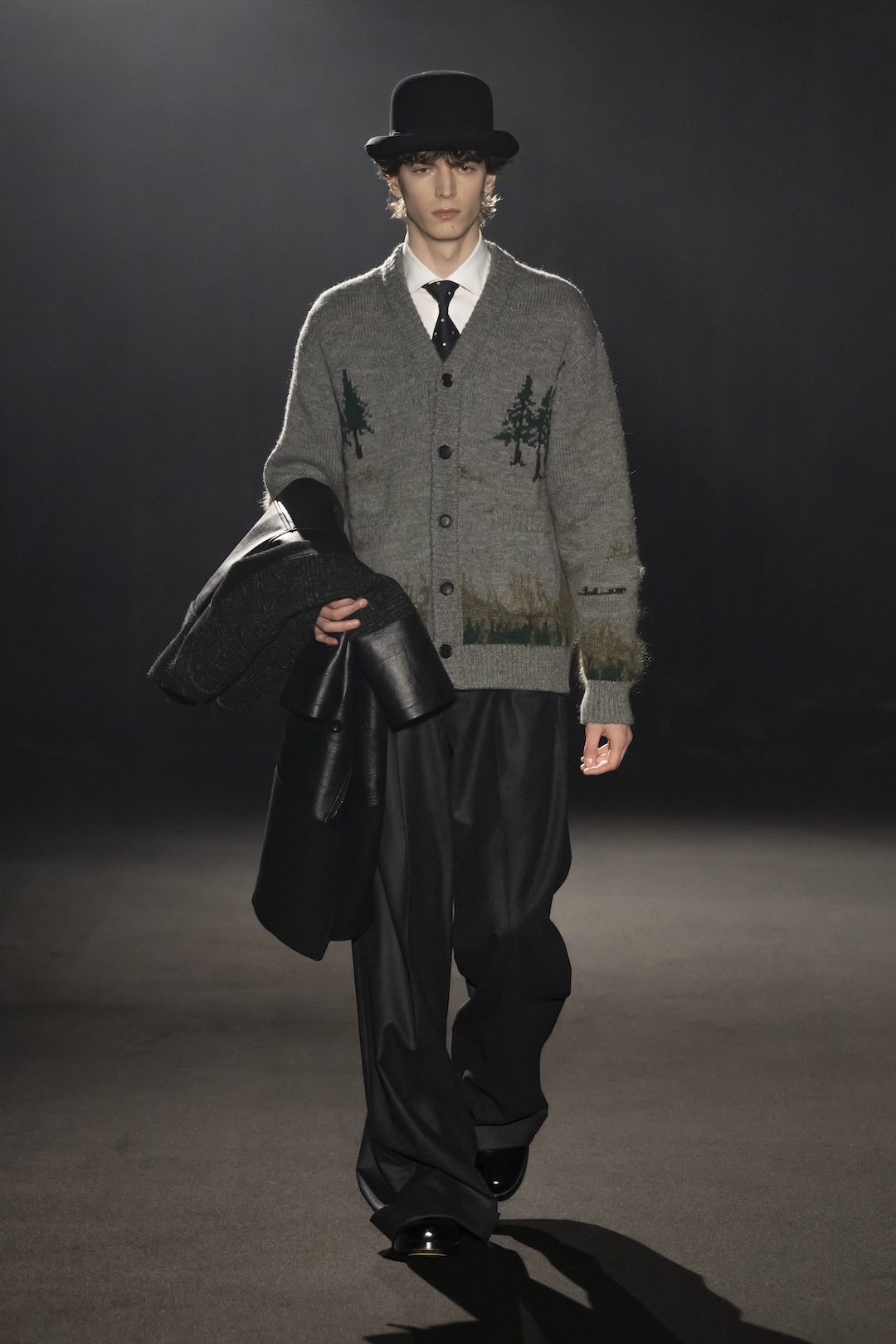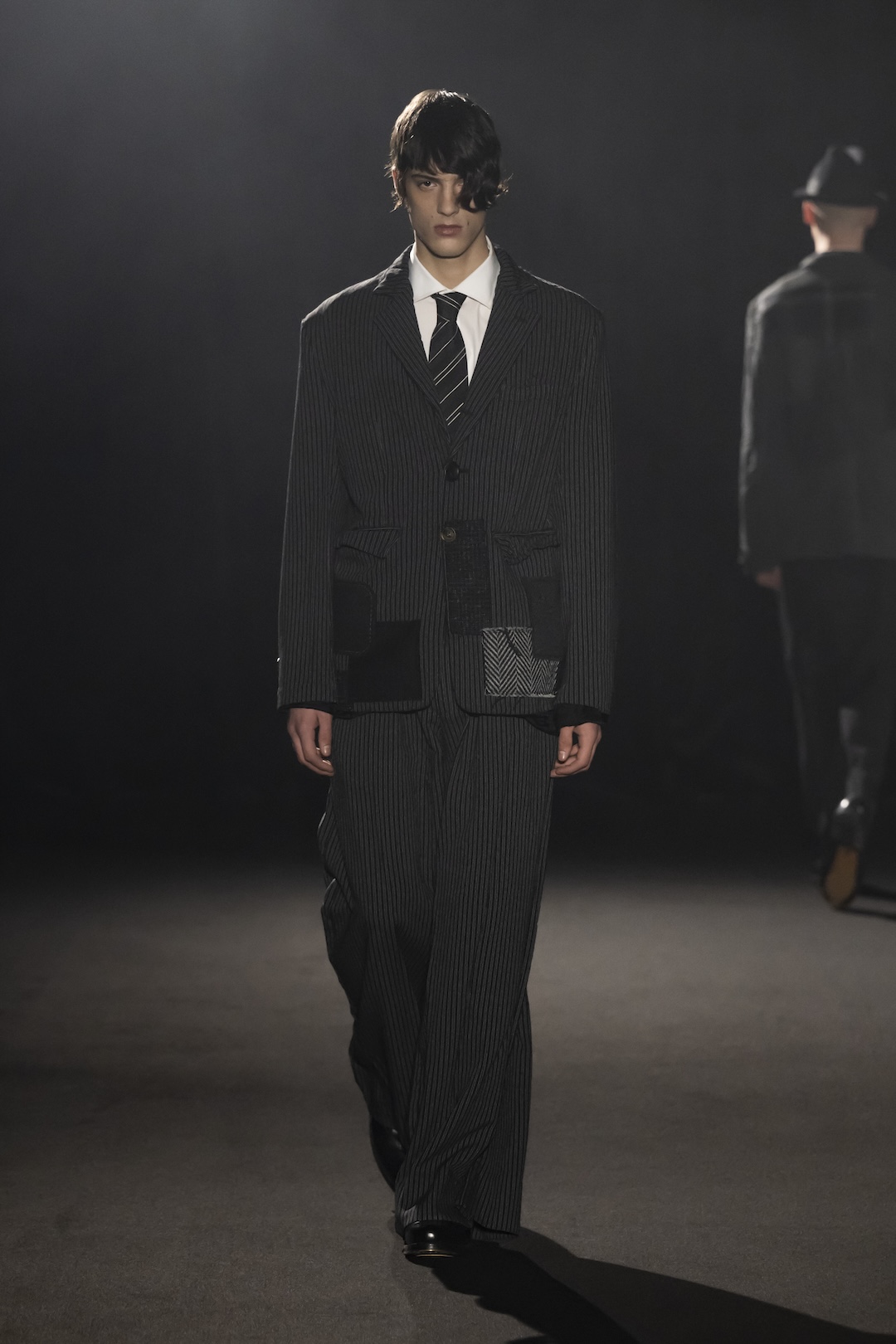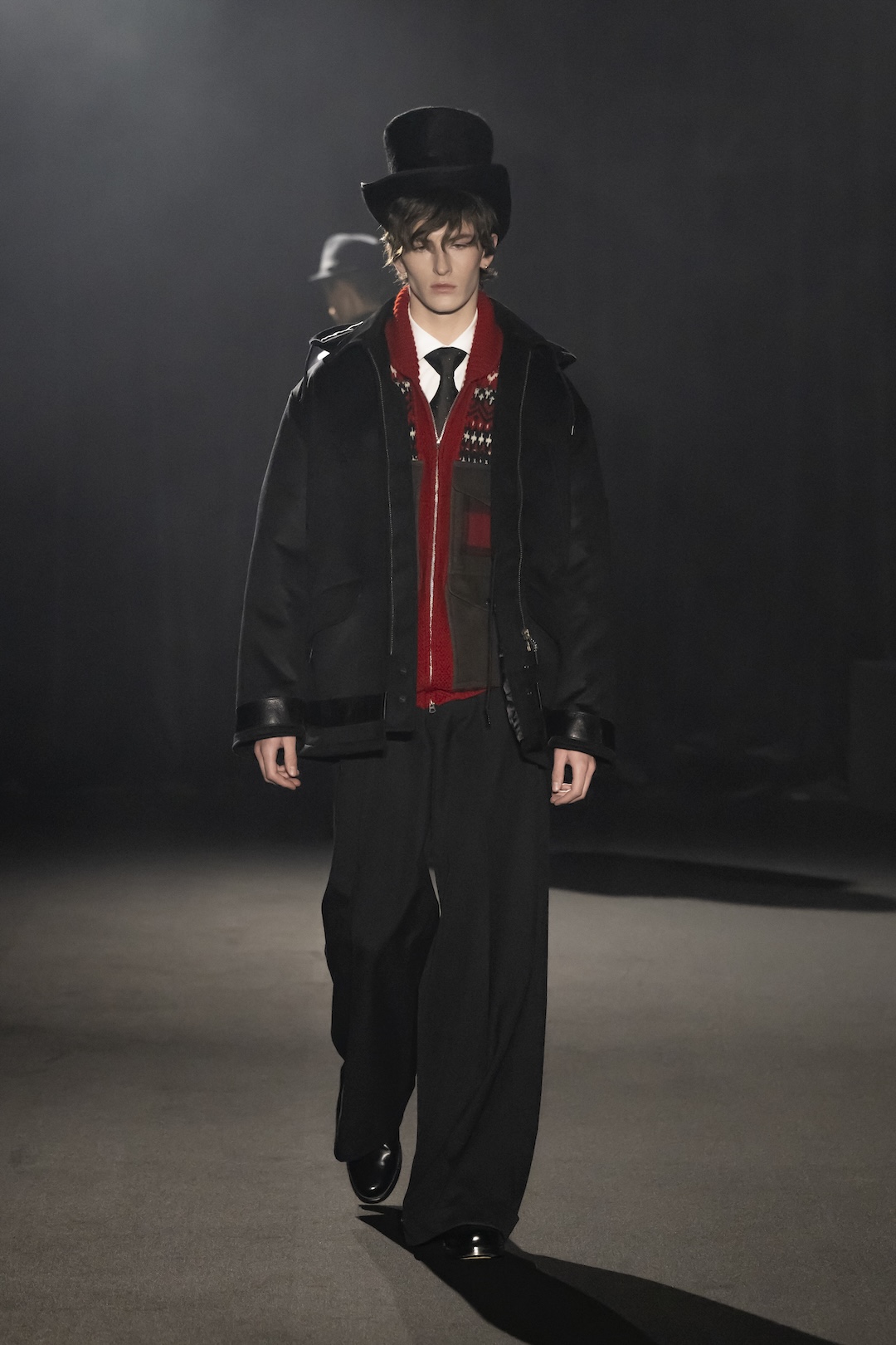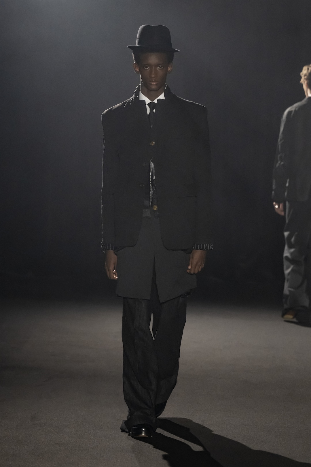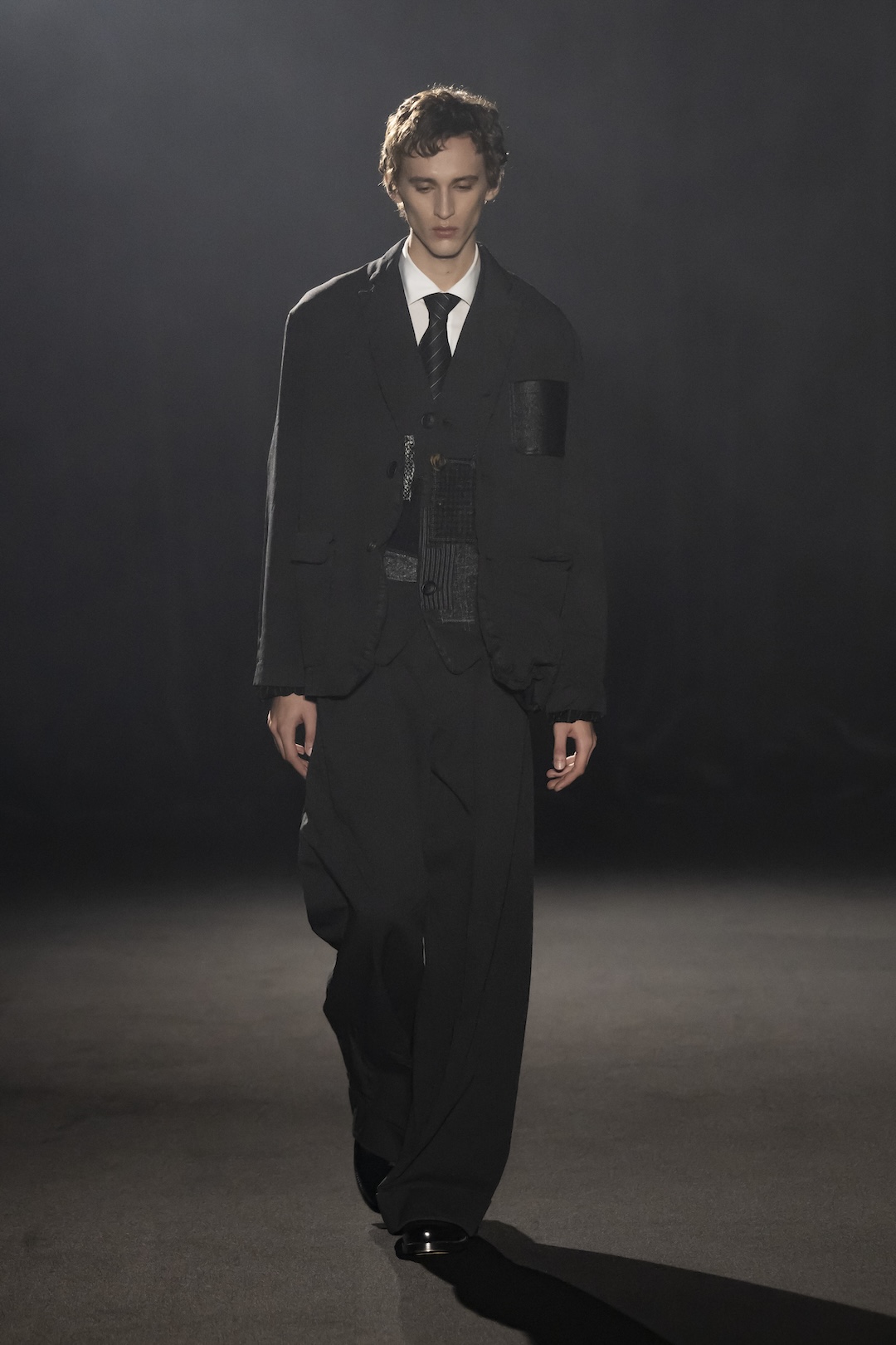 Footwear and accessories further emphasize this “best dressed” ethos, blending heritage craft with modern comfort. The runway featured formal shoes by Tricker’s, leather footwear by Heinrich Dinkelacker, and technical sneakers from New Balance. Additional collaborative pieces with Rocky Mountain and ’47 rounded out the accessories, ensuring every element of the look adhered to the season’s refined standard. By deconstructing and elevated classic pieces, Junya Watanabe MAN continues to redefine contemporary masculine style.