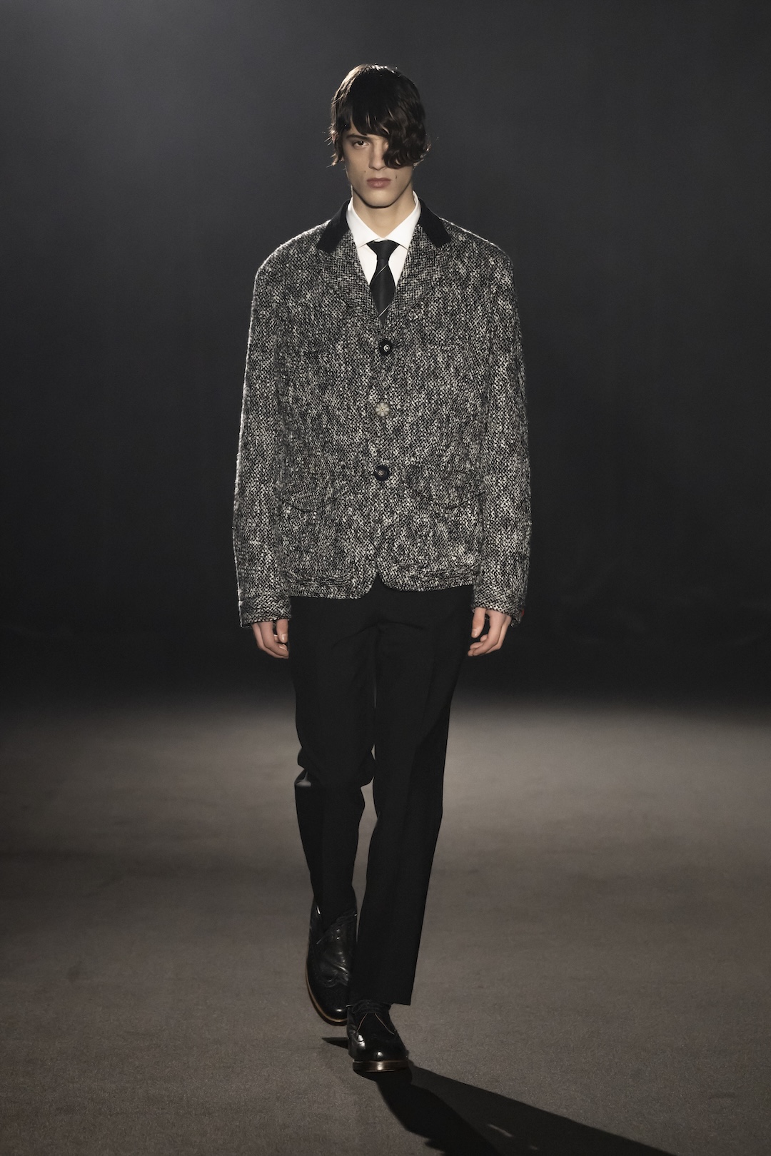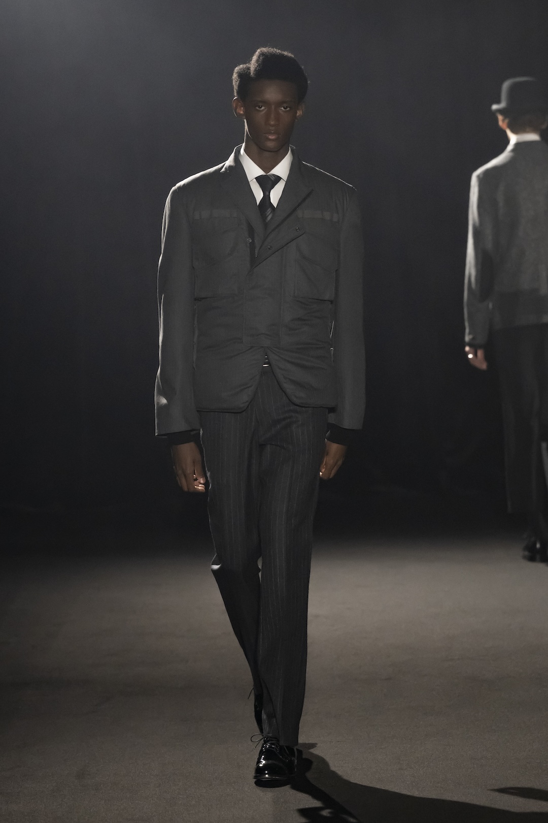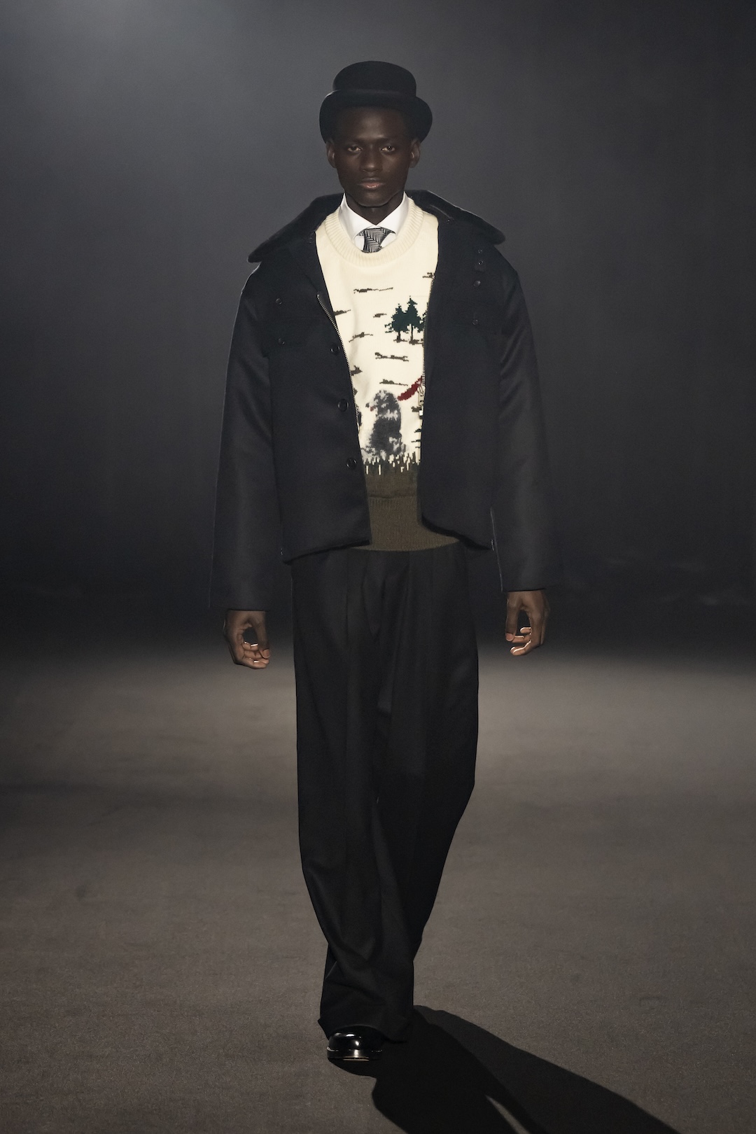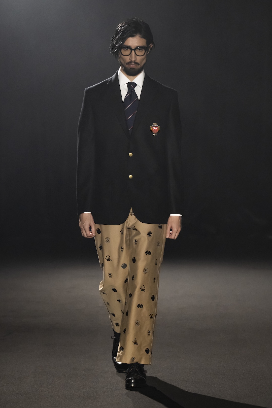 Footwear and accessories further emphasize this “best dressed” ethos, blending heritage craft with modern comfort. The runway featured formal shoes by Tricker’s, leather footwear by Heinrich Dinkelacker, and technical sneakers from New Balance. Additional collaborative pieces with Rocky Mountain and ’47 rounded out the accessories, ensuring every element of the look adhered to the season’s refined standard. By deconstructing and elevated classic pieces, Junya Watanabe MAN continues to redefine contemporary masculine style.