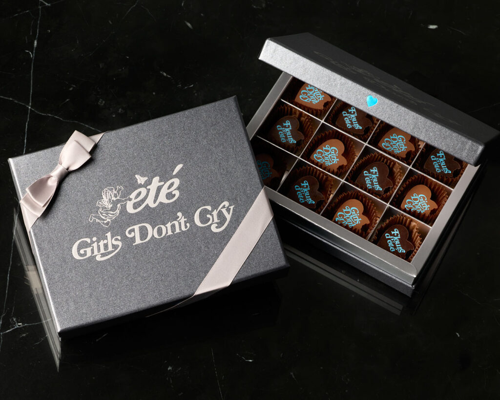 Shoji, who was recognized as Asia’s Best Female Chef in 2022, brings her meticulous culinary standard to the selection, utilizing premium ingredients sourced from Belgium. The chocolates themselves serve as a canvas for the collaboration, with both the Été and Girls Don’t Cry logos rendered in a striking blue hue. Among the twelve pieces included in the set, the nut-flavored chocolates remain a central highlight, having maintained an iconic status among followers of the brand since the collaboration’s inception.