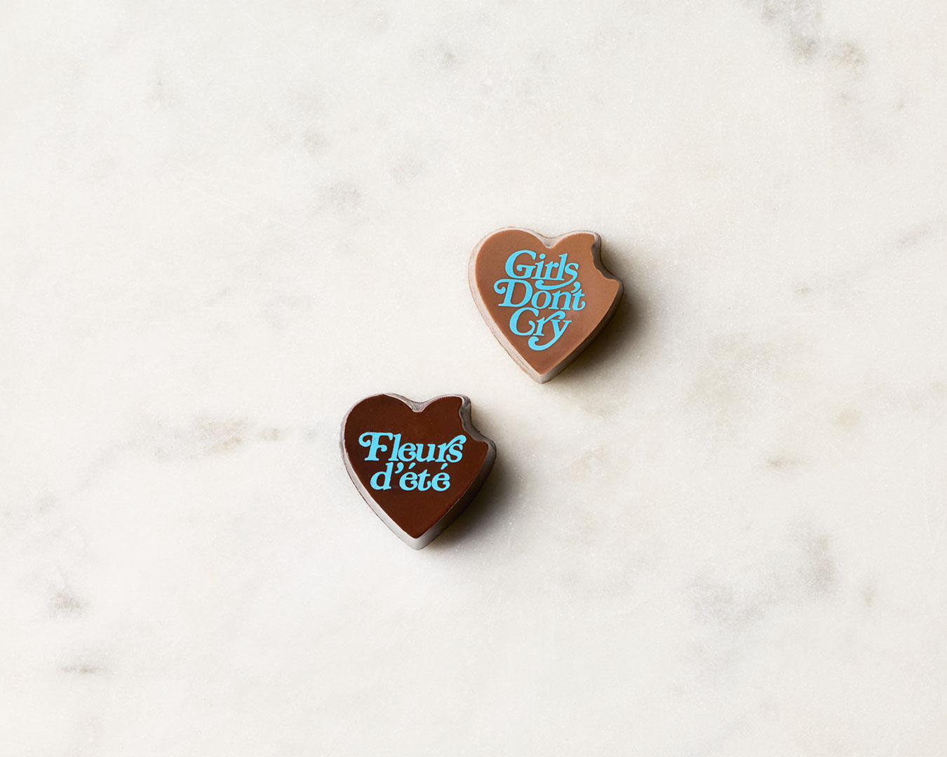 The aesthetic of the collection is further elevated by the inclusion of a Bite Heart original shopper, mirroring the playful yet chic spirit of Verdy’s artwork. Every detail, from the choice of ingredients like hazelnuts and pistachios to the elegant ribbon finishing on the box, reflects the combined vision of Shoji’s culinary precision and Verdy’s cultural influence. Priced at ¥9,000 (tax included), the Été x Girls Don’t Cry chocolate box is available for reservation through the Omakase platform. As with previous releases from Shoji—whose seasonal fruit cakes are often referred to as “phantom cakes” due to their exclusivity—this Valentine’s edition is expected to be a highly sought-after item for those who appreciate the intersection of luxury food and global street culture.