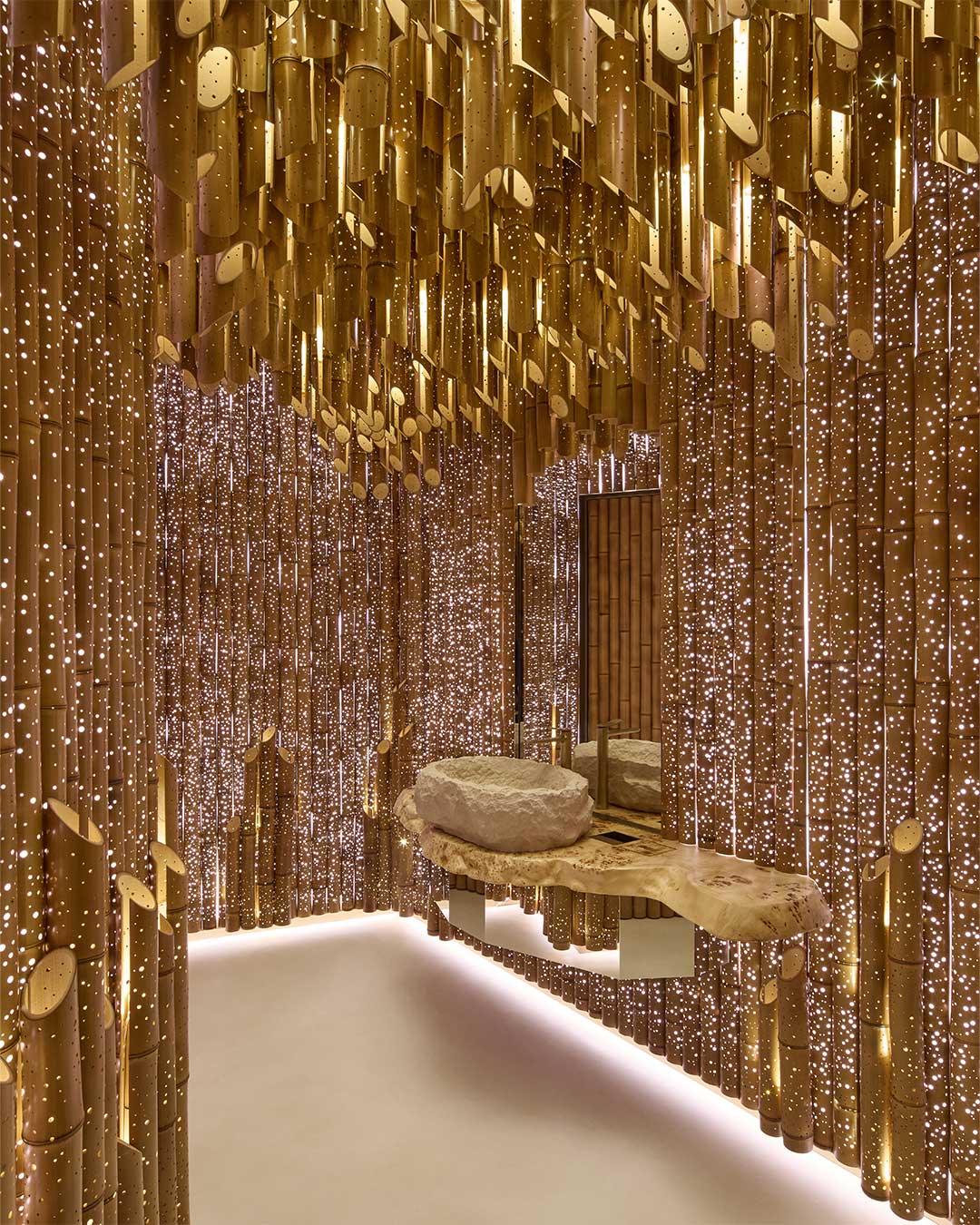 The interior offers a poetic journey through the various universes of Dior, presenting collections for both men and women designed by Jonathan Anderson, alongside leather goods, fine jewelry, and dedicated made-to-order rooms. The space harmonizes Dior’s timeless codes—such as the Versailles parquet flooring—with Japanese artistry, including delicate washi paper finishes and lanterns shaped like the legendary “Lady Dior” bag. For the ultimate lifestyle experience, the pavilion houses “Café Dior,” showcasing an exclusive menu by renowned chef Anne-Sophie Pic, serving as a culinary tribute to Monsieur Dior’s passion for French “art de vivre”. The Dior Bamboo Pavilion officially welcomes visitors starting February 12, 2026.