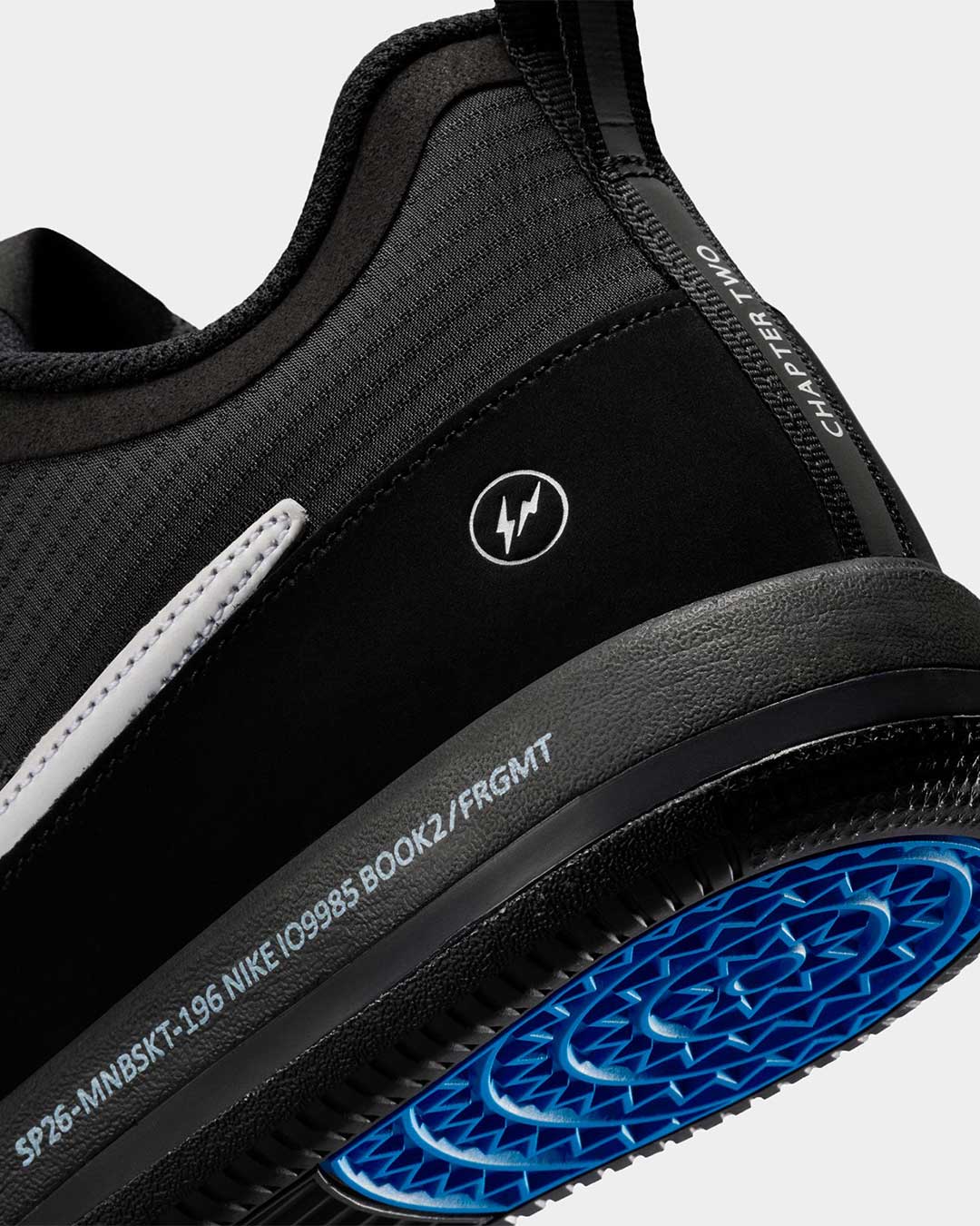 The aesthetic is defined by its sharp contrast and subtle branding. The iconic Nike Swoosh features a blue and white split-color design across the inner and outer sides of the shoe, while the Fragment and Book 2 logos are placed discreetly on the heel and side sole. As the sole retailer in Japan carrying this specific model, V.A. will serve as the primary destination for this limited-edition drop, which arrives as a sophisticated synthesis of athletic performance and contemporary Japanese design.