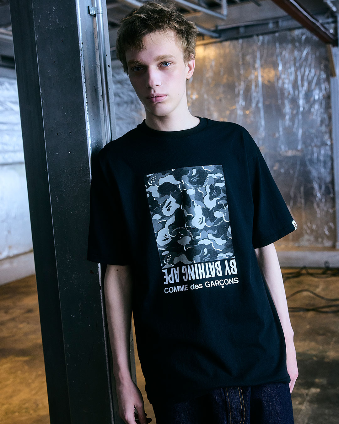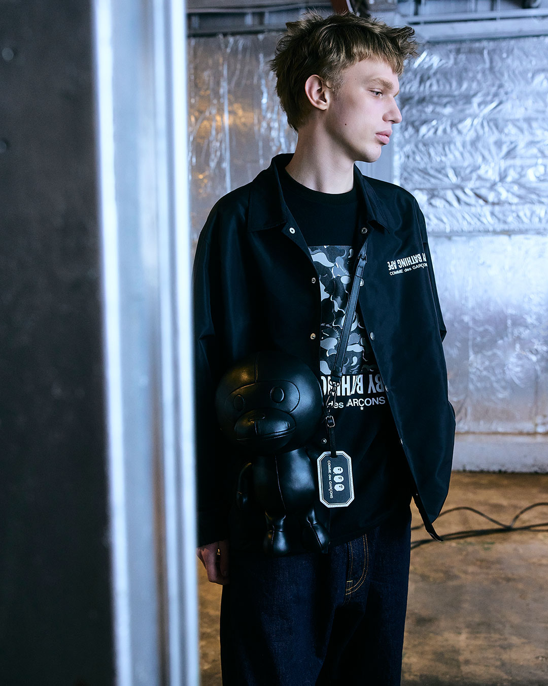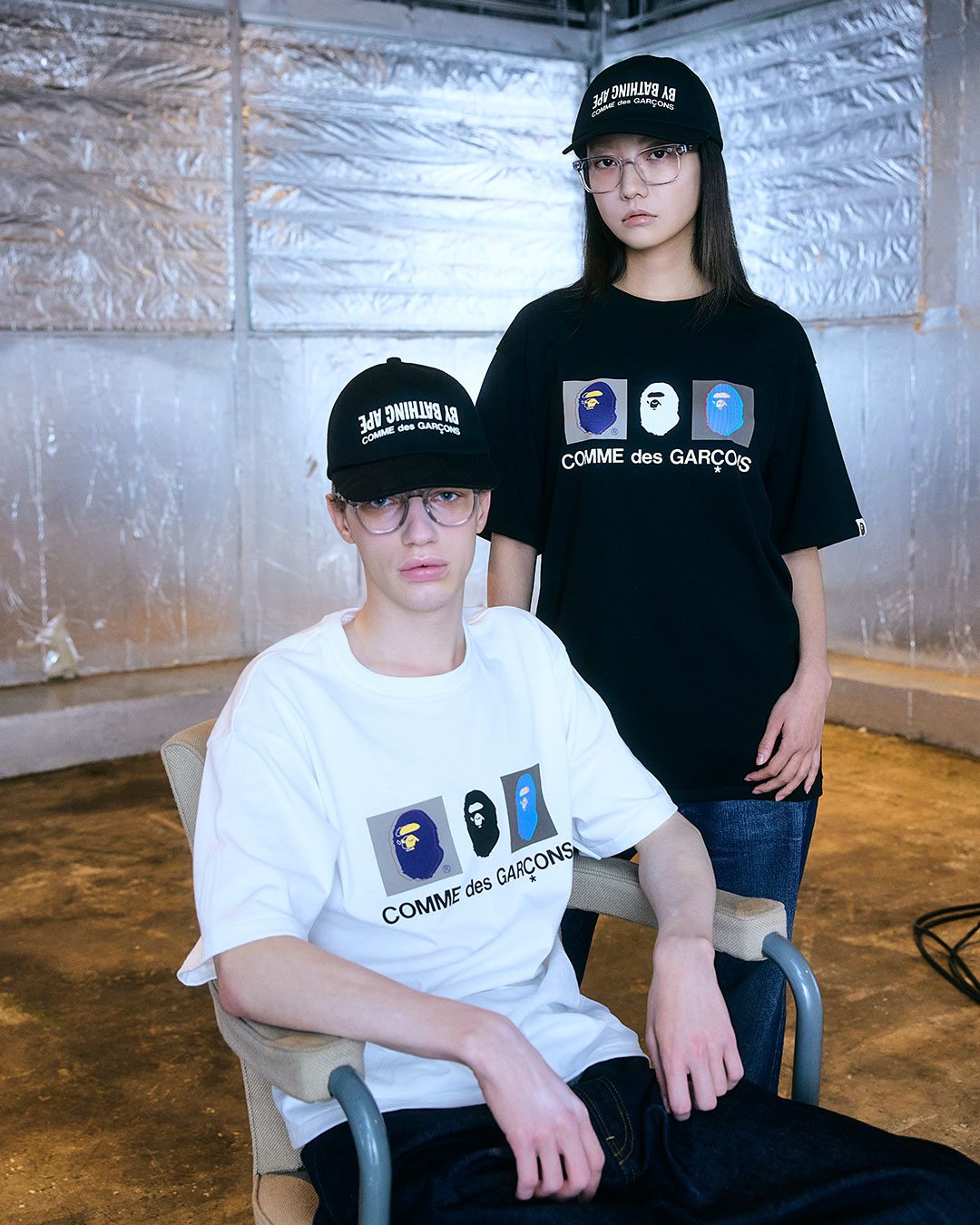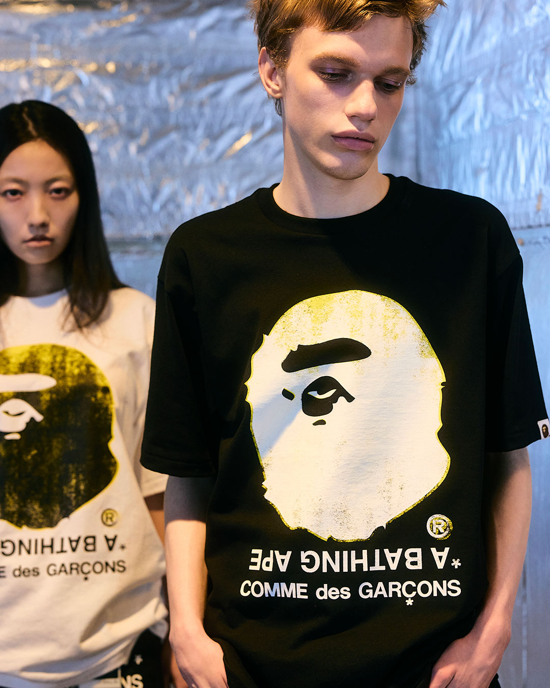 A Bathing Ape and Comme des Garçons have announced a new capsule collection for the 2026ss season. Inspired by the theme of pop art, the collaboration reconstructs iconic motifs from both brands using graphic techniques that evoke the analog feel of screen printing. The collection relies on a monotone base accented with yellow and blue to enhance the visual impact of the graphics. Og designs including Ape Head, Baby Milo, and Bape Camo are updated with intentional blurring and misalignment to align with the pop art aesthetic.